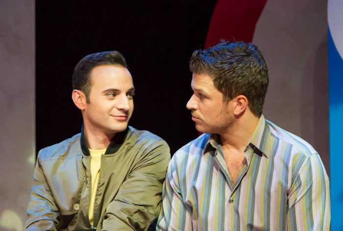 Finkel and company making the very most of each song’s potential, as in the Act Two opener “Disco Roosevelt,” which has the entire cast doing their very best Saturday Night Fever moves to Finkel’s inspired choreography. Still, the cast assembled on the NoHo Arts Center stage could hardly be better. Finkel deserves major snaps as choreographer for integrating so much dance into A Ring In Brooklyn’s eclectic blend of songs, whether in ensemble numbers or more intimate twosomes.