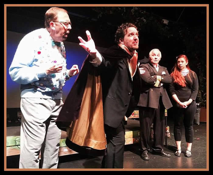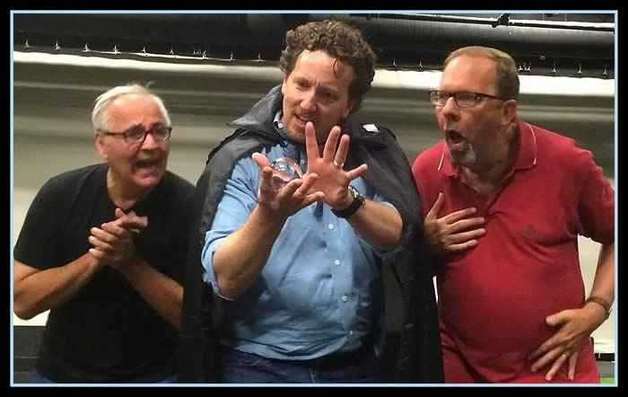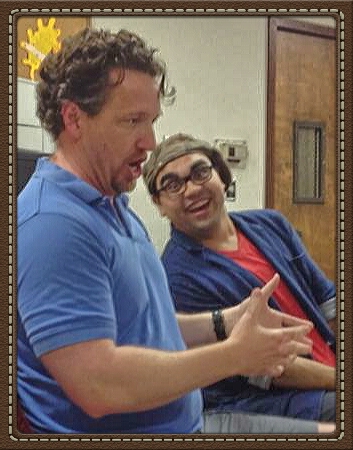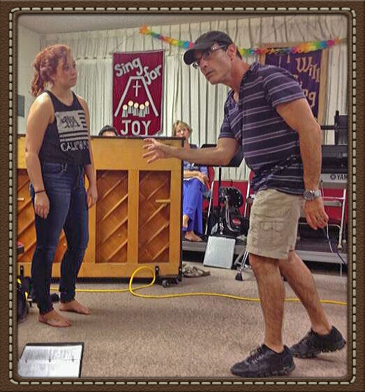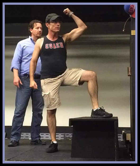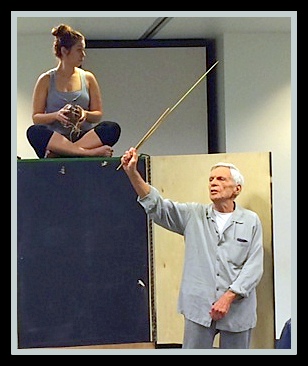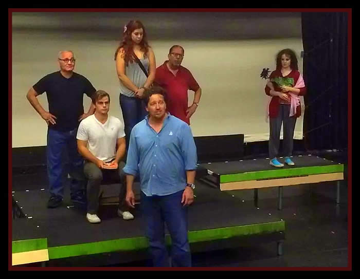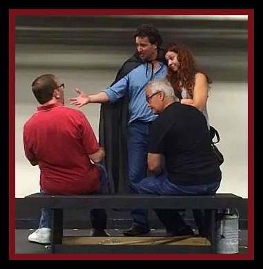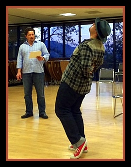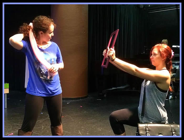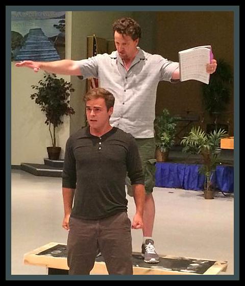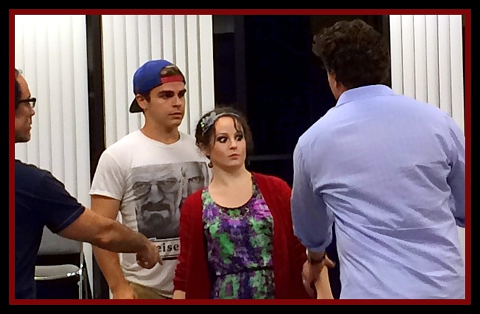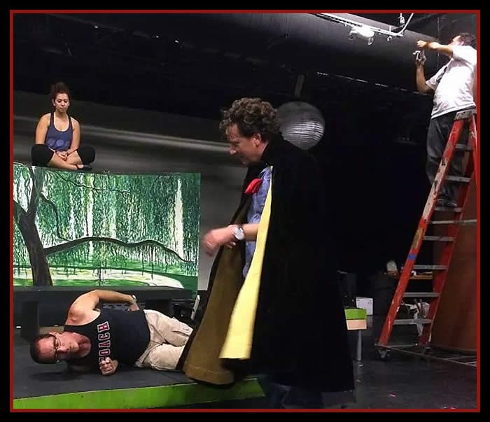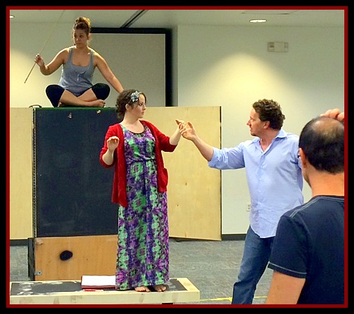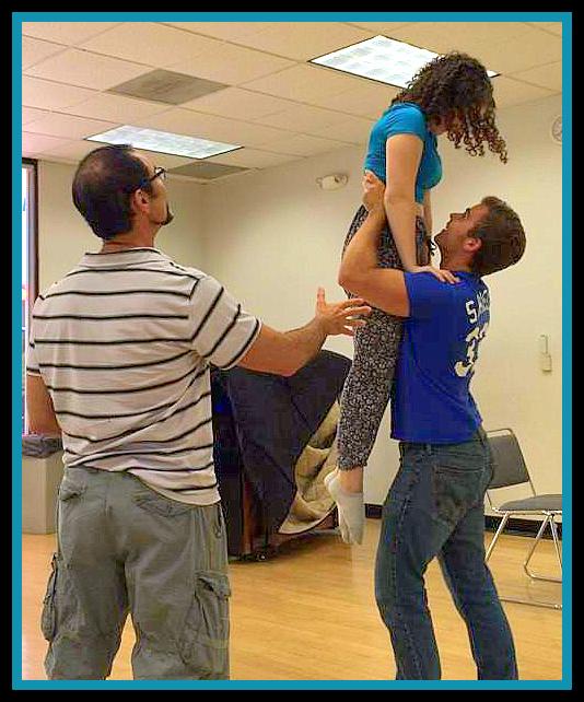 THE CAST BUILDS THE COMIC ABDUCTION SEQUENCE DURING REHEARSAL