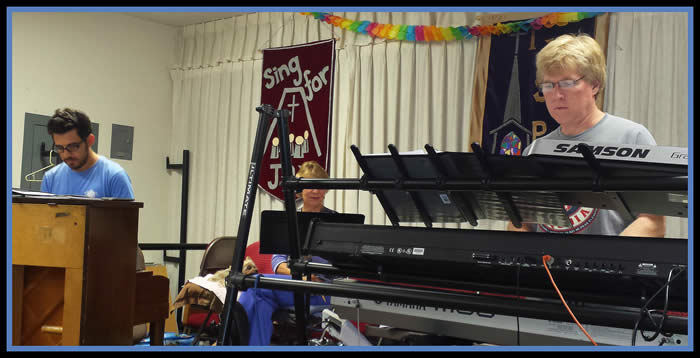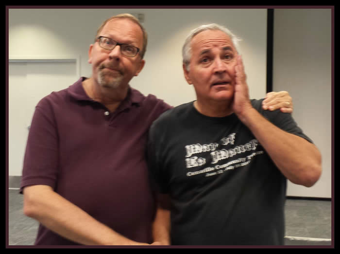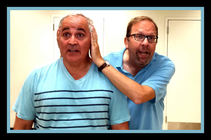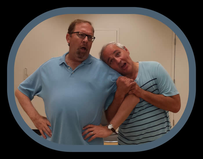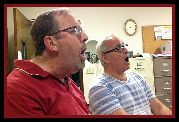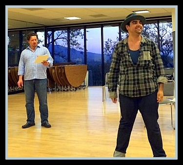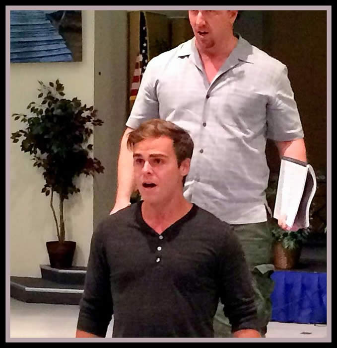 PAUL PANICO AS HUCKLEBEE AND ROBERT WEIBEZAHL AS BELLOMY REHEARSE THE FATHERS' FIRST DUET NEVER SAY NO